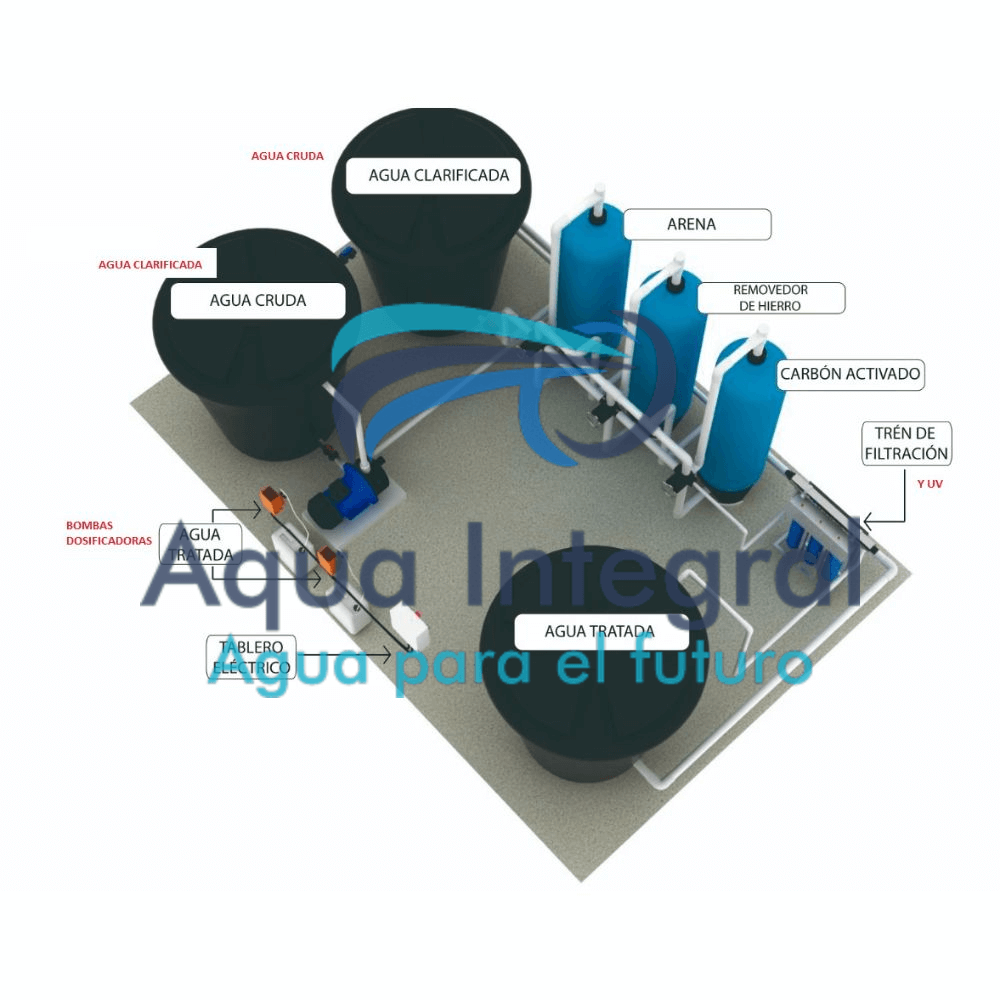Este sistema esta diseñado para uso residencial, industrial y comercial donde el agua que se deba tratar sea agua de pozo profundo. La planta de tratamiento de agua potable tienen una capacidad de 4 m3/h
